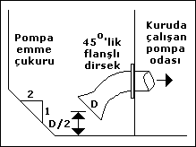 dirsek şeklinde teşkil edilmelidir. Borunun ağzı emme haznesi tabanına D / 3'ten daha yakın olmamalı ve bu mesafe