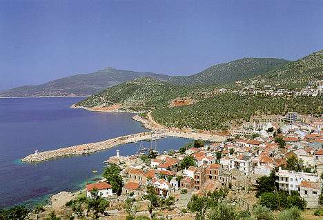 by a fortified wall, of which traces are to be seen on the facade facing the island of Meis (Kastellorizon). No traces of