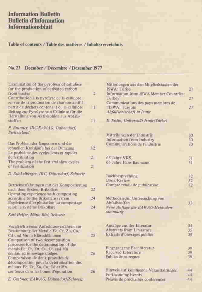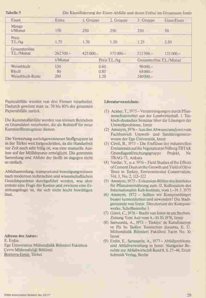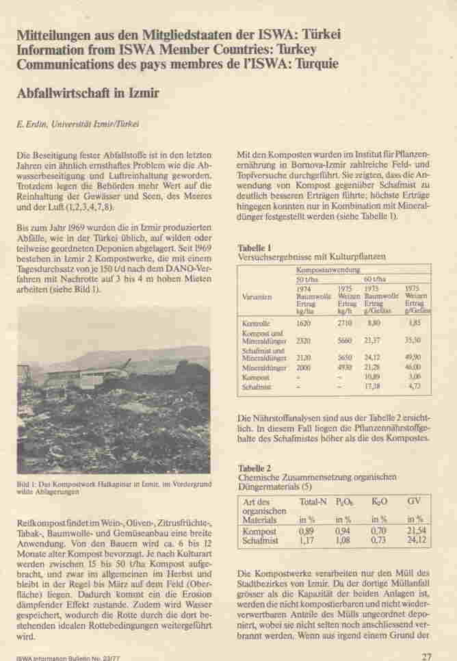 Solid Wastes Management in Izmir, 1976